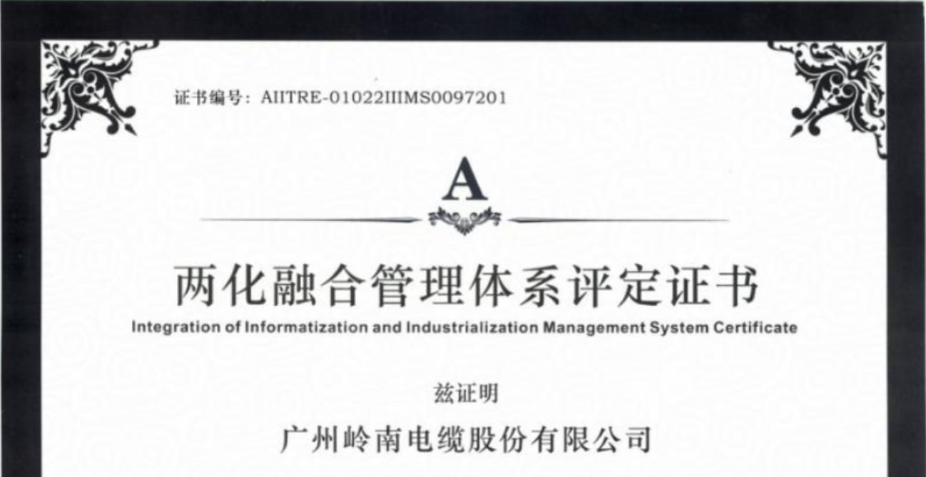 近日,智光電氣控股公司廣州嶺南電纜股份有限公司(以下簡稱“嶺南電纜”)順利通過國家工業和信息化部《信息化和工業化融合管理體系 要求》(GB/T 23001-2017)及《信息化和工業化融合管理體系 新型能力分級要...
