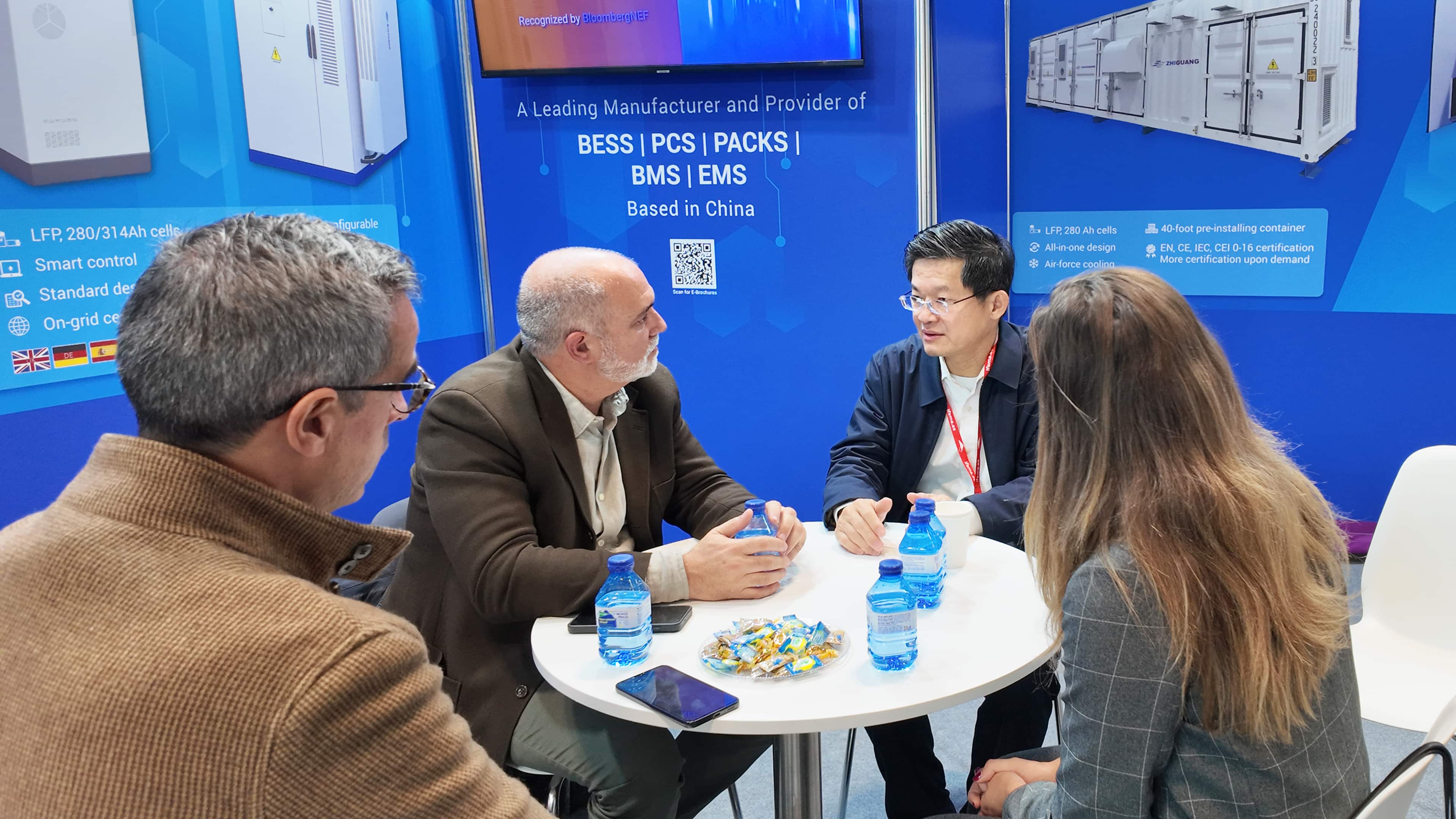 The booth welcomed industry leaders, developers, and EPC contractors, including Elecnor, Emeren, Acciona Energía, and ?rsted, who discussed system design, project applications, grid integration, and partnership opportunities with Zhiguang Electric’s technical team.