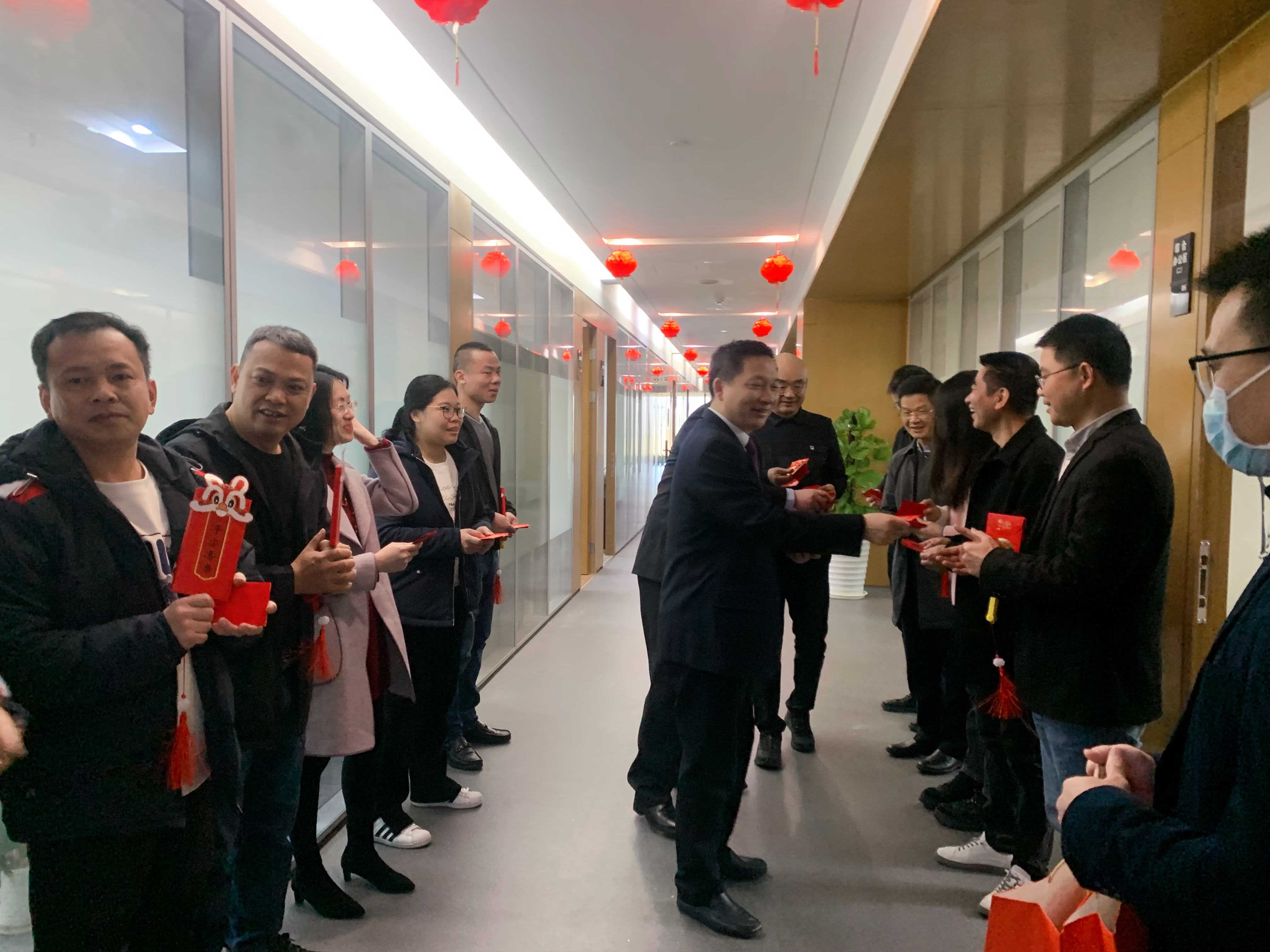 活動(dòng)過后,公司經(jīng)營(yíng)管理層來到辦公區(qū)給員工拜年,派發(fā)開年利是,送上新年祝福,現(xiàn)場(chǎng)陣陣歡聲笑語,讓還處于“待機(jī)”狀態(tài)的員工迅速恢復(fù)元?dú)猓貧w到“滿血”狀態(tài)。