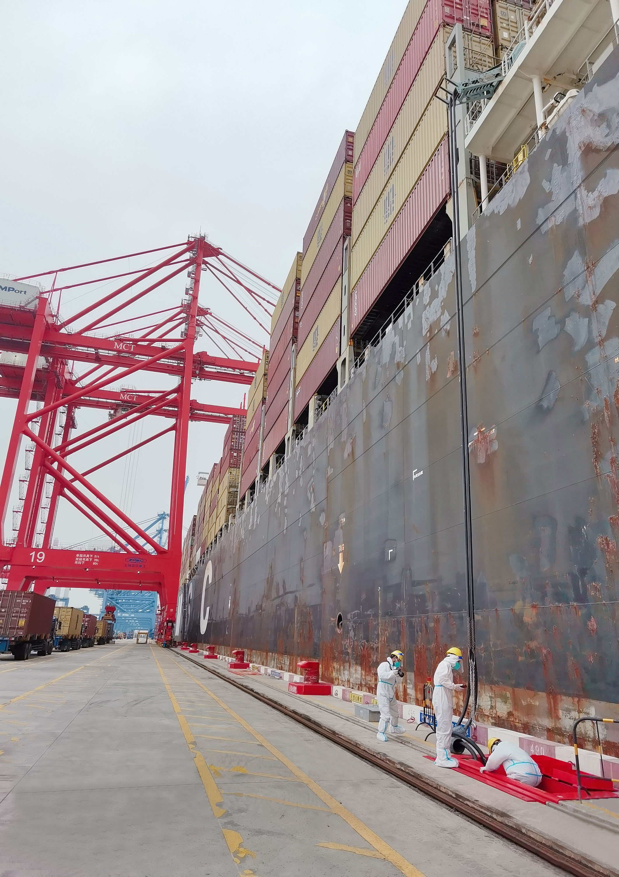 本次用電船只為MSC CAMILLE(地中海卡米爾)輪”是一艘巴拿馬籍巨輪,船長(zhǎng)365.52米、橫梁51 米,總噸位153092噸,載重量165644,是世界上最大的集裝箱船之一。